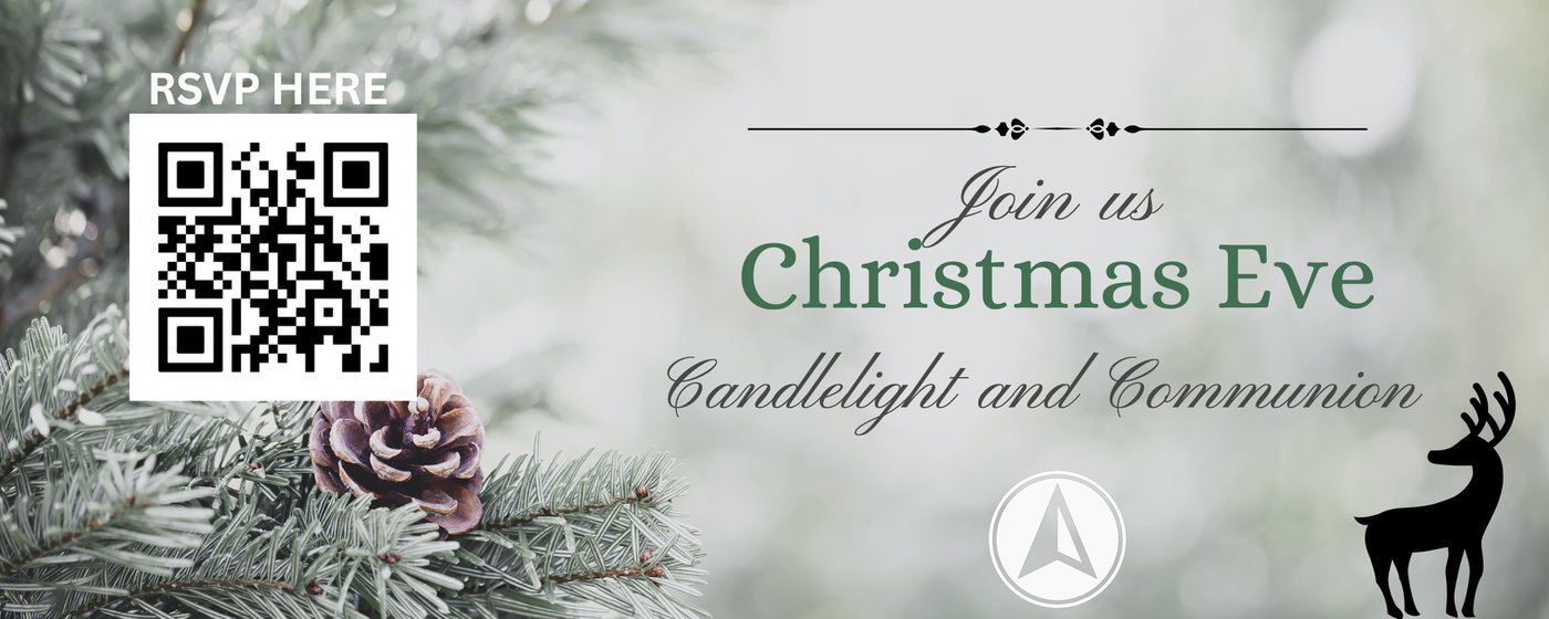 We want to invite you and your family to join us Christmas Eve for an evening of carols, candlelight, and communion. RSVP your seat using the QR code above or clicking here.