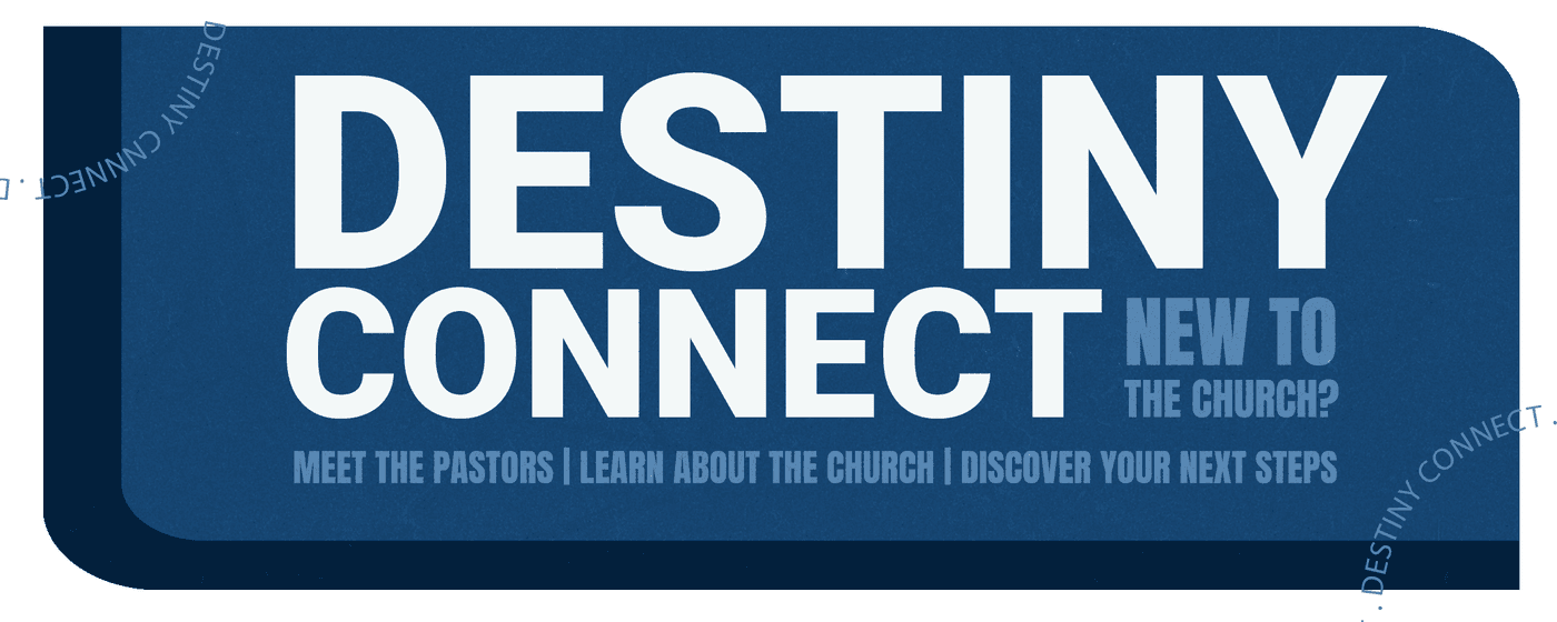 If you are new to the church or ready to get more connect then join us at DESTINY CONNECT. Here, we discuss all that is happening at the church, talk about what it looks like to be a "member" and give you the opportunity to learn how you can serve at Destiny! RSVP here!